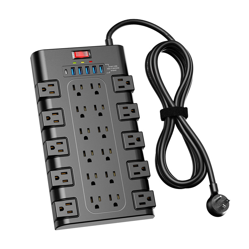 Surge protector with 22 ac outlets and 6 usb charging ports